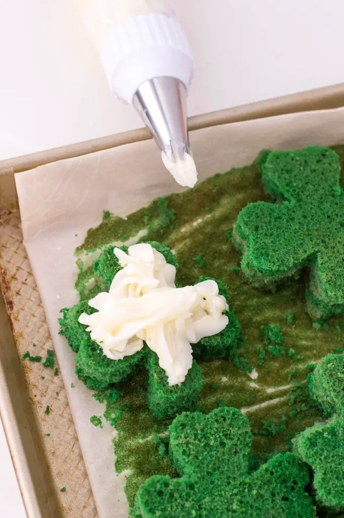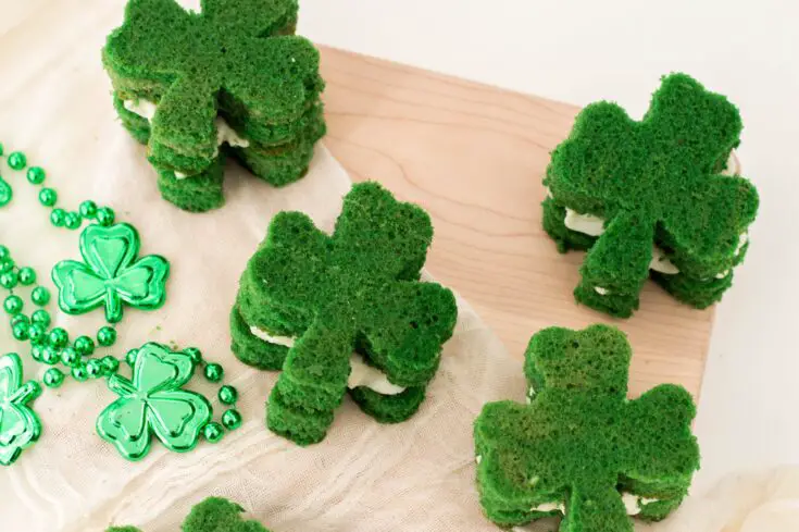 Do you ever throw St. Patrick’s Day parties? These St. Patrick’s Day Whoopie Pies are the perfect addition to any sweet table. Not to mention, the assembly process is perfect to complete with kids. All it takes is spreading some buttercream and sandwiching pieces of cake together! Definitely a fun and yummy party recipe.